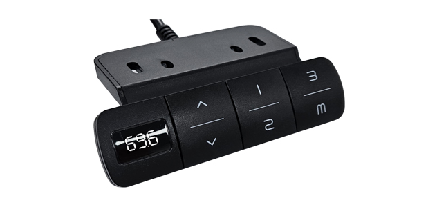 1. [ ∧ ] / [ ∨ ] 버튼을 눌러서 높이를 조절하거나, [ 1 ] ~ [ 3 ] 의 메모리 버튼을 눌러 저장된 높이로 조절합니다.