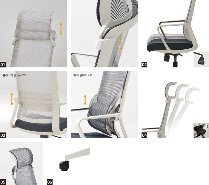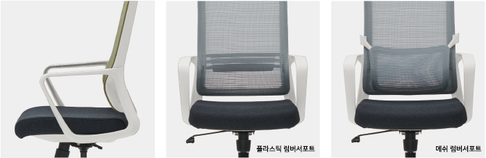 등받이 자체의 과감한 곡률 디자인, 고탄성 플라스틱 럼버서포트 및 메쉬 럼버서포트 등 요추 지지를 위한 세가지 솔루션을 제공합니다.