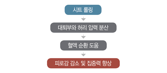 [시트 롤링 → 대퇴부와 허리 압력 분산 → 혈액 순환 도움 → 피로감 감소 및 집중력 향상]